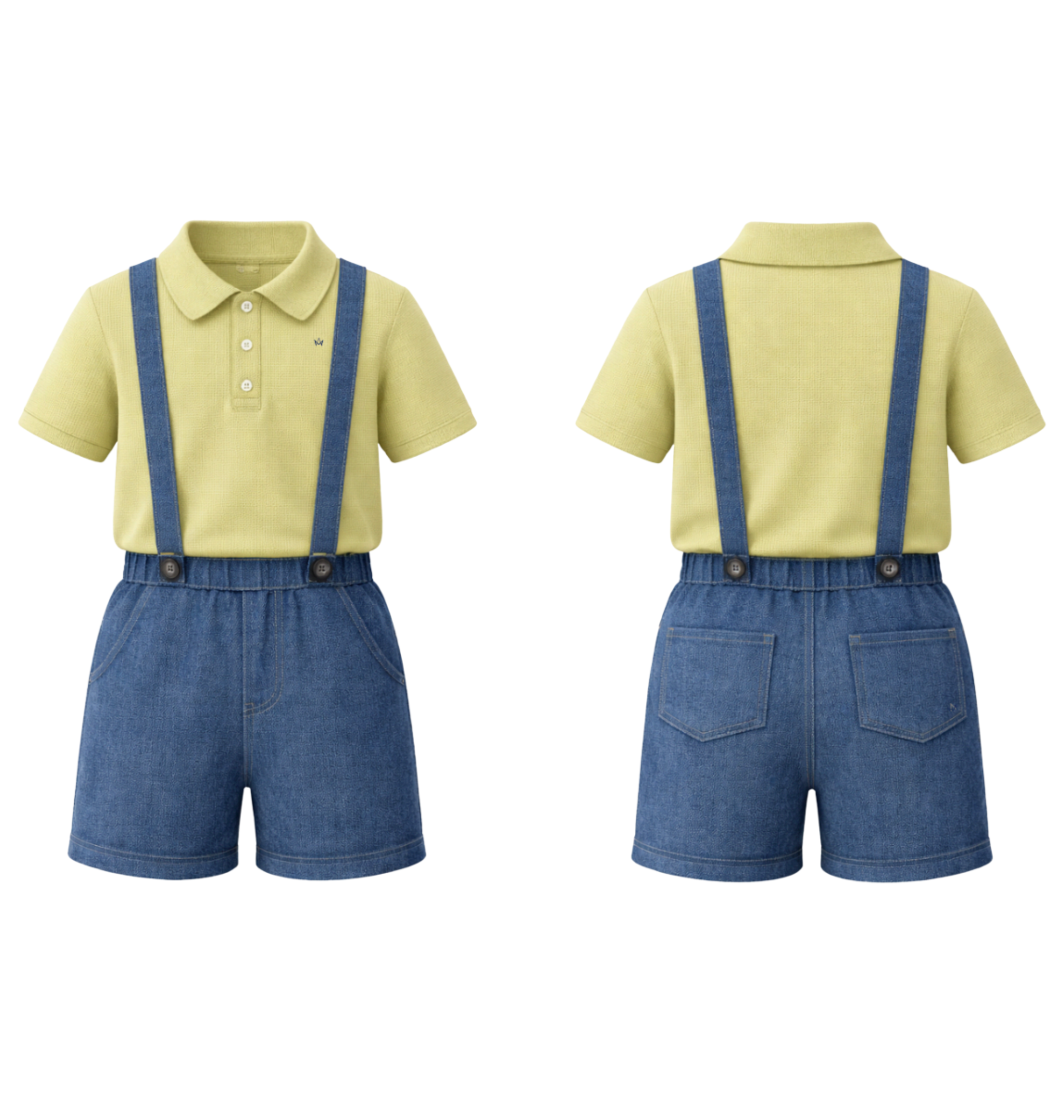 Boys polo shirt & suspender shorts set.
